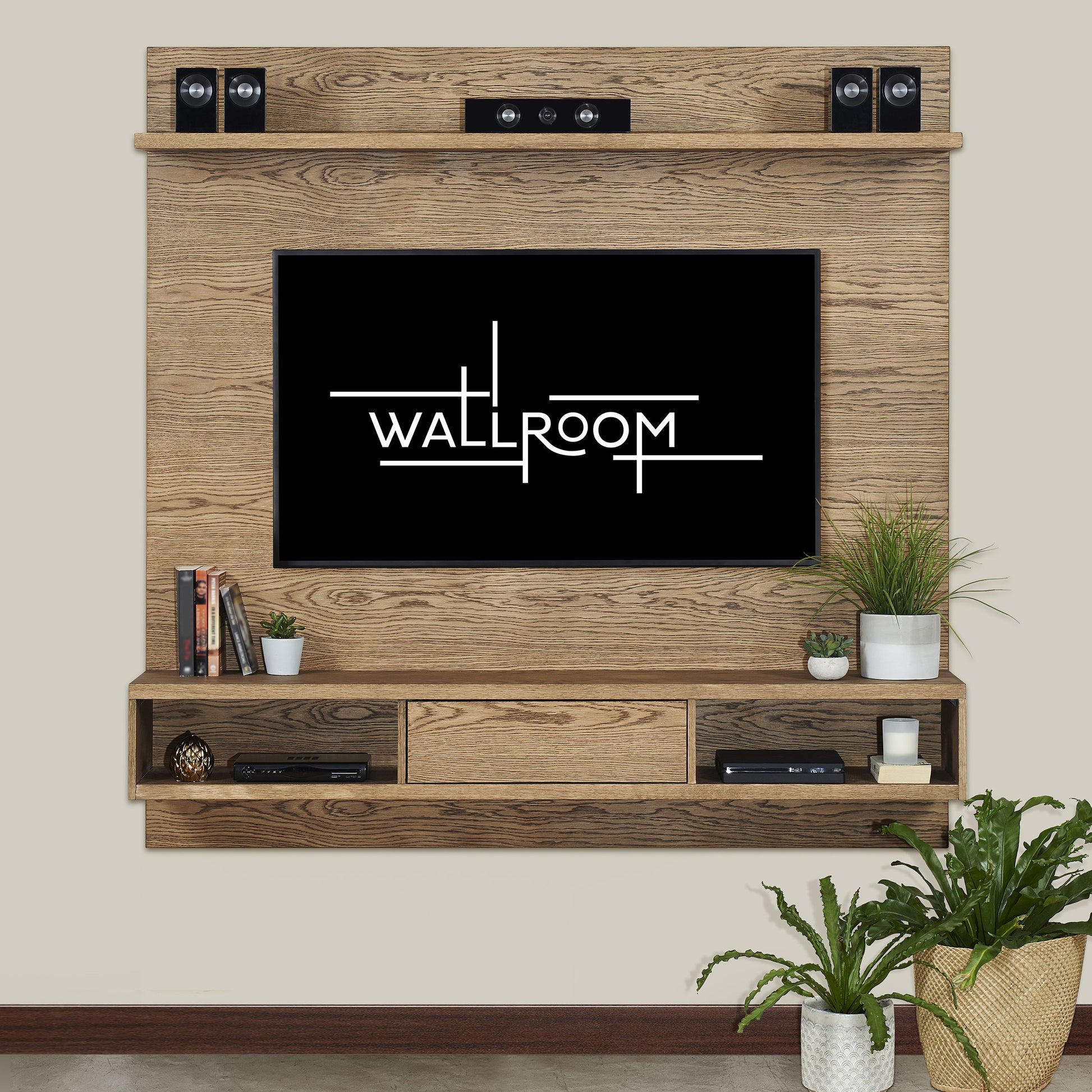 Floating TV Cabinet - Oak Veneer in Castle Brown