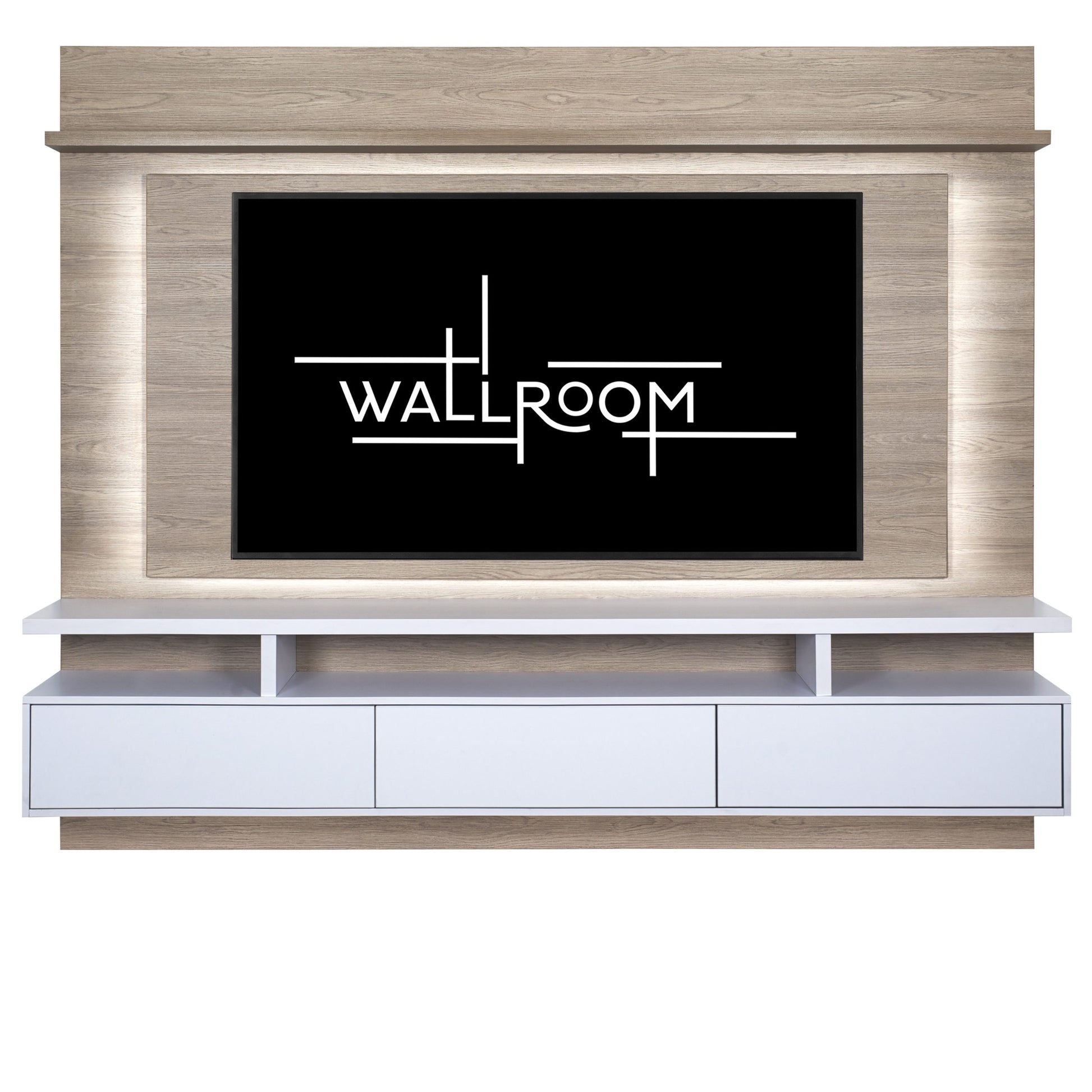 Floating TV Stand - Terra Nova Backboard, Top Shelf & TV Panel & White accents