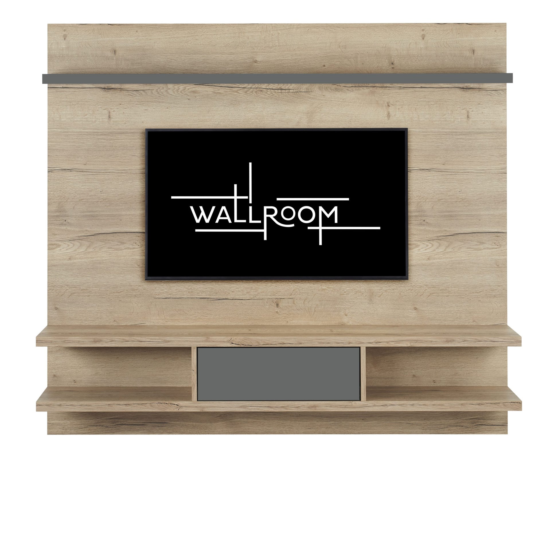 TV Stand with Shelves - Niemann Halifax Oak & Dunkel Grau & Titanium accents