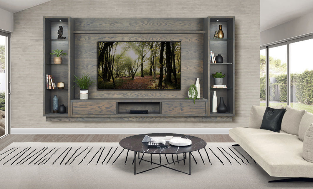 TV Wall Unit - Oak Veneer in Sofa Storm