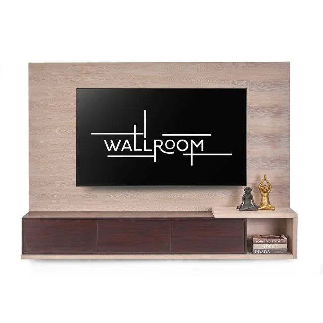 Wall-mounted TV Stand - Oak Veneer in Dark Mist & Burgan Mahogany